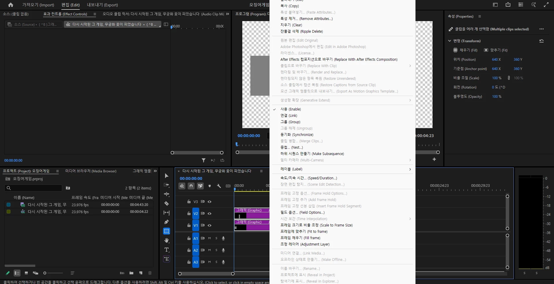 여기서 좀더 디테일한 그룹화를 진행한다면 에프터이펙트를 이용하는것이 훨씬 편합니다.