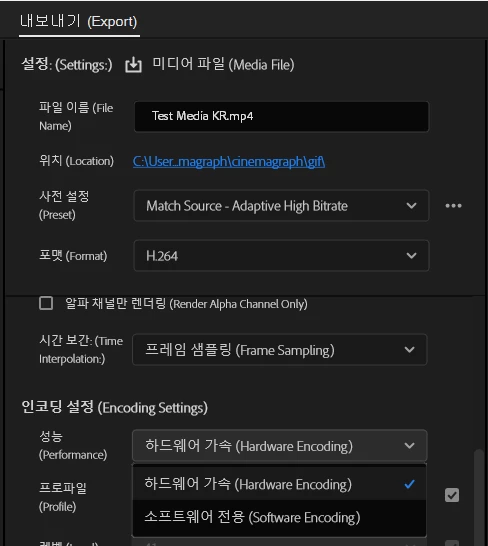 이틀 전 처음 프리미어 프로 결제 후 동영상을 만들어 내보내기 기능을 사용하여 동영상 을 추출하는데 계속 오류가 발생합니다 ㅠ 인코딩만 1시간 30분소요되는데 5번이상 실패하고 문의드려요..