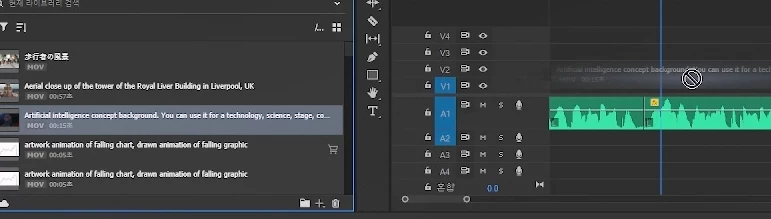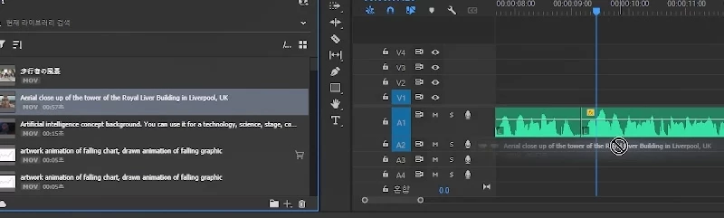라이브러이에 있는 파일 타임라인에 추가 안됩니다.