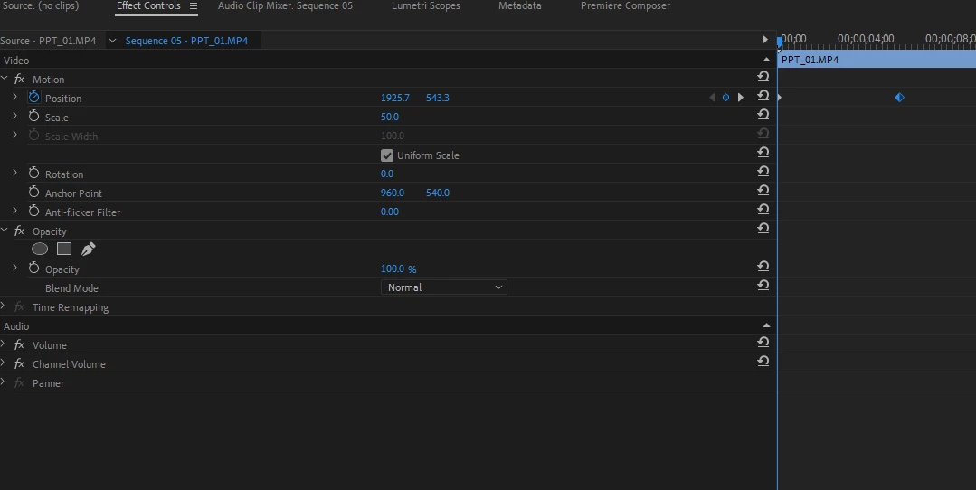 에프터이펙트에서는 간단히 되던 일인데 프리미어에서는 불가능한가요??