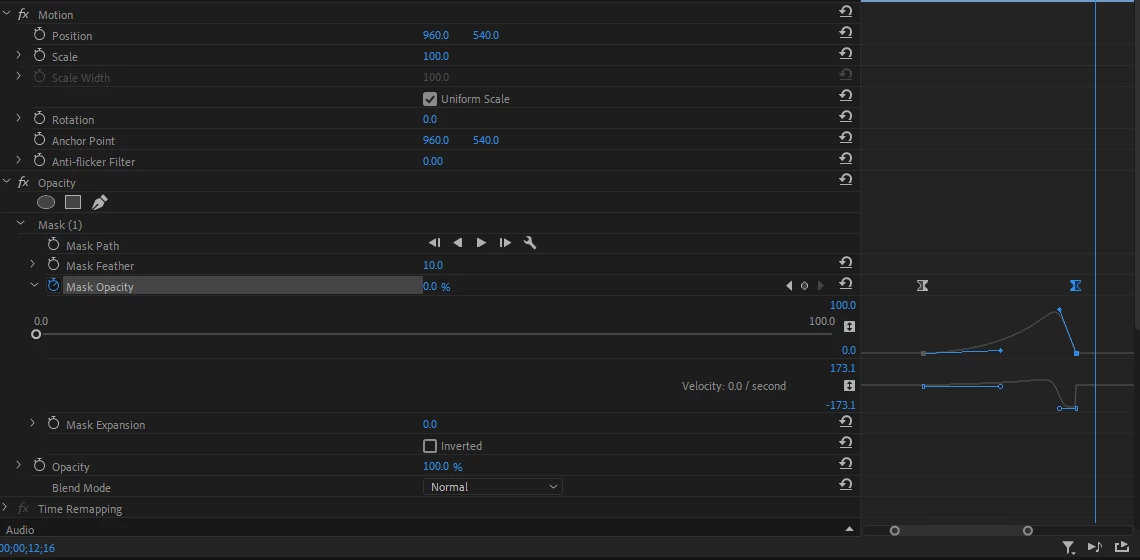 키프레임을 이용해서 그래프의 속도를 조정하고 있습니다.