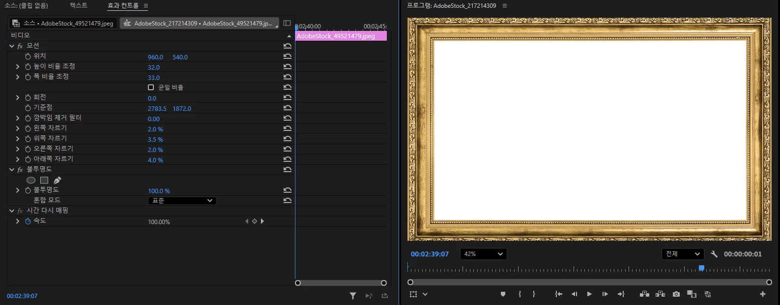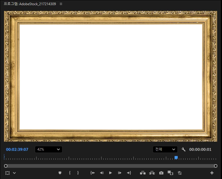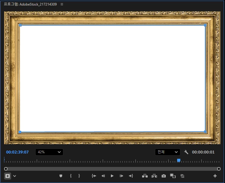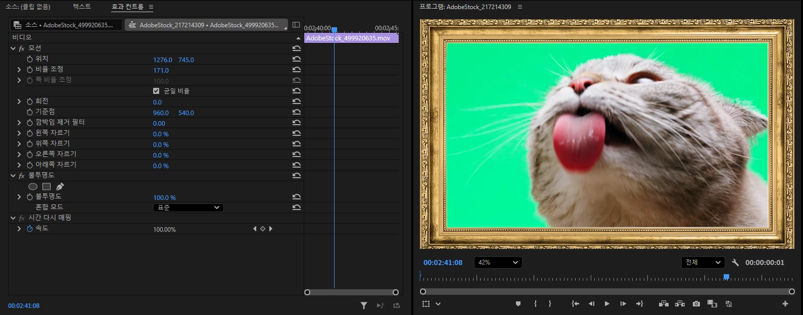 액자를 위치과 비율을 설정해서 화면에 맞게 크기를 조정하면 고양이 영상이 액자레이어에 뒤에 가려져서 보이지 않을것입니다.
