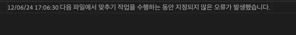 하단에 경고창이 있어서 봤더니 아래와 같은 오류창이 나옵니다