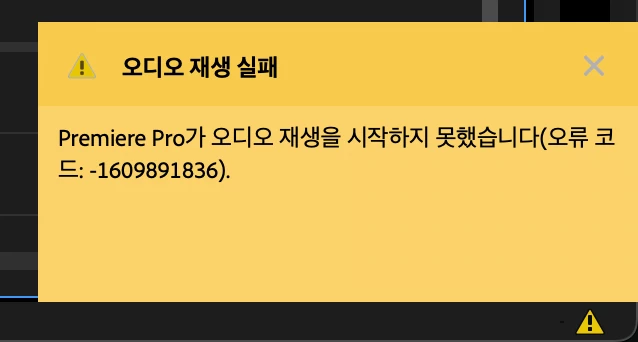 맥북 프리미어프로 오디오 재생 실패 (오류코드 : -1609891836)