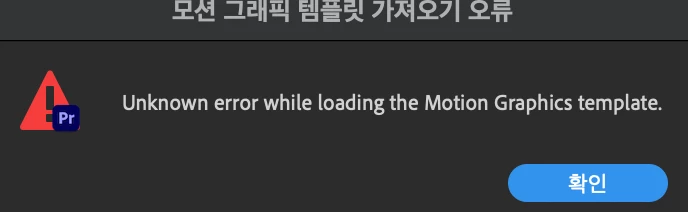기본그래픽에서 모션그래픽 템플릿을 불러오면 이런 오류창이 뜹니다