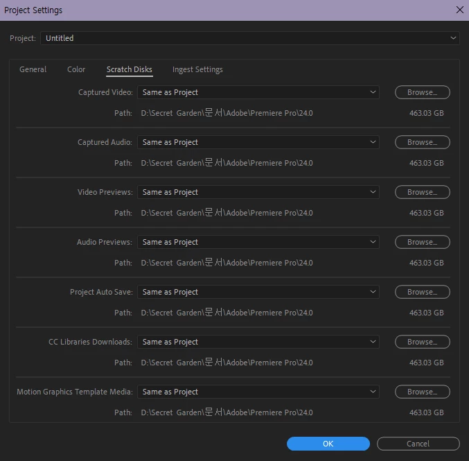 • Go to File -> Project Settings -> Scratch Disks