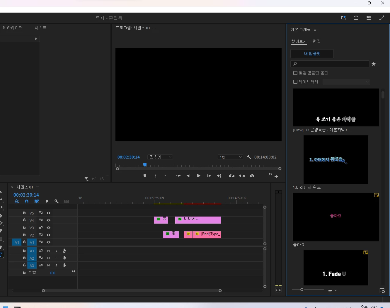 사실 모션 자막 템플릿에서 움직임만 추출해서 프리셋해서 저장하려고하는데, 보라색자막템플릿은 되고, 분홍색자막템플릿은 안되네요...