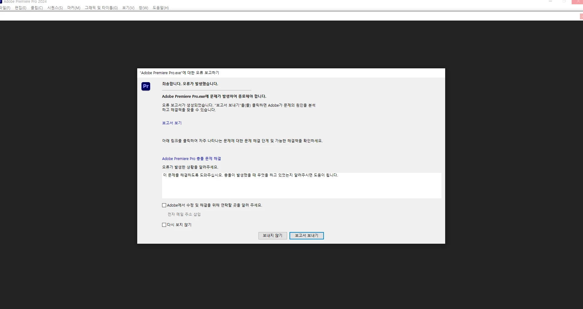 별다른 작업을 하지 않았음에도 오류 메시지가 뜹니다