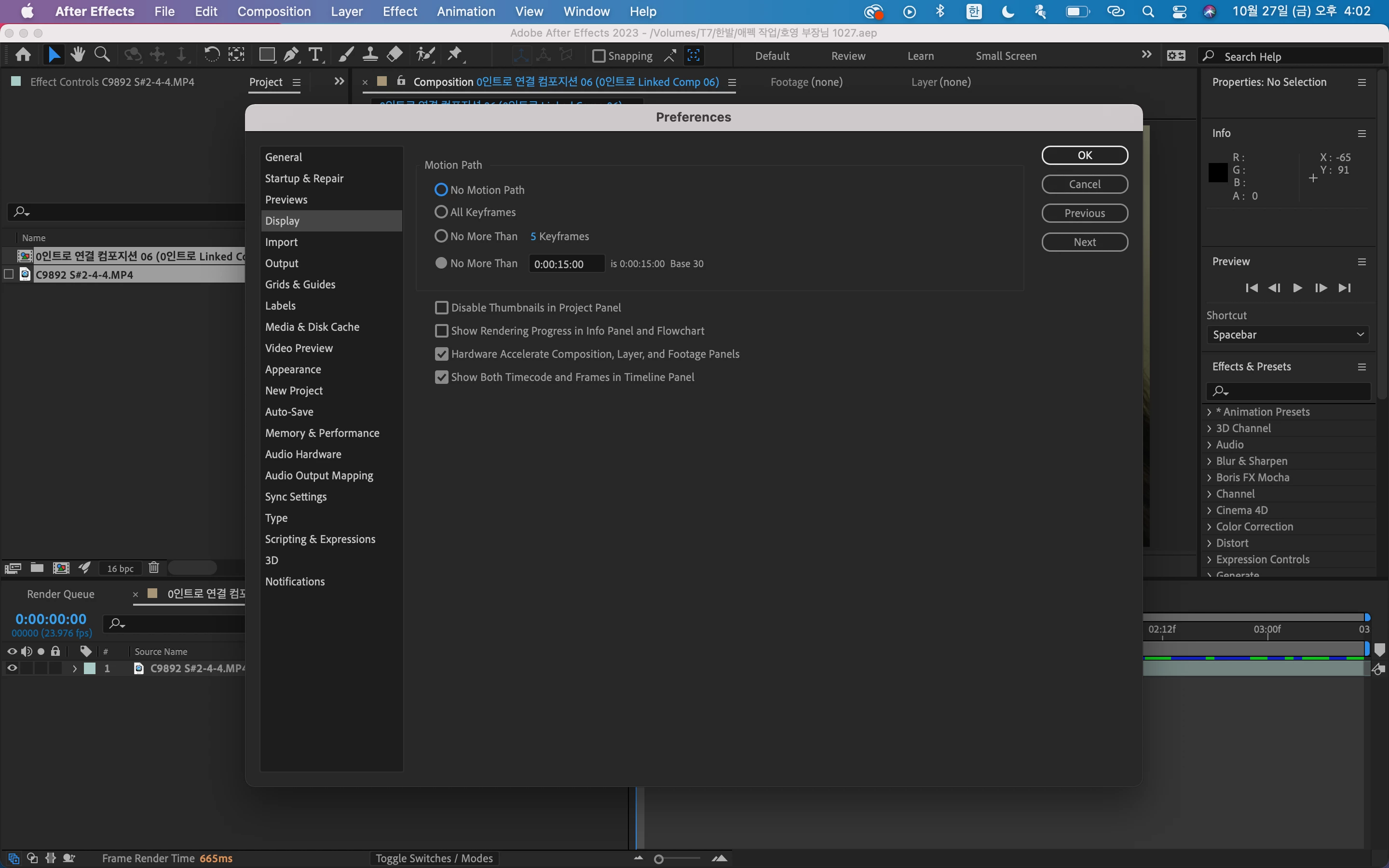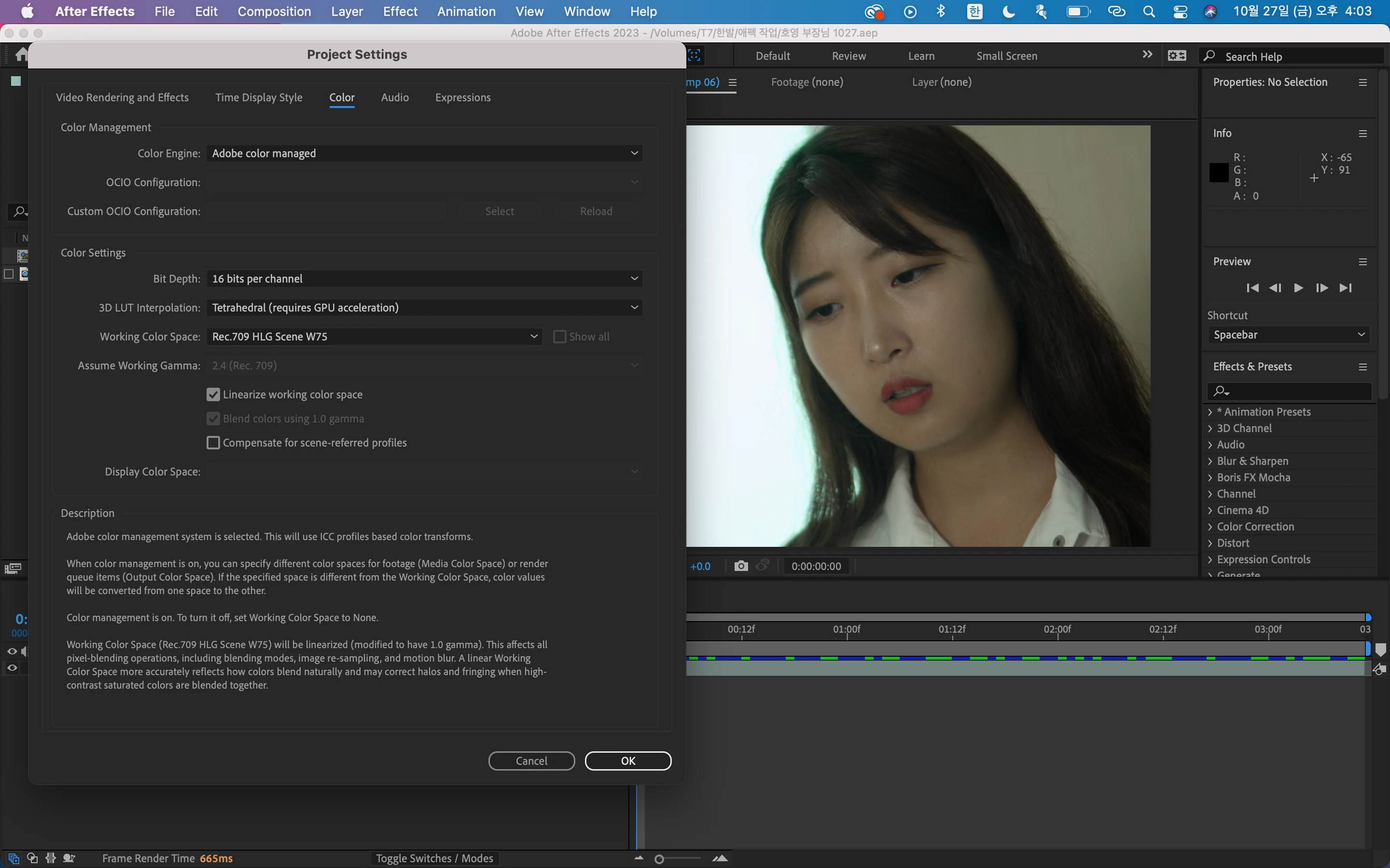 프리미어에서 다이나믹 링크로 애펙에 연동해서 모션 효과를 줬습니다. 다시 프리미어로 돌아와서 프리뷰를 해 보니 애펙 작업 부분만 미묘하게 색감이 틀어져 있습니다. 몇 시간동안 프리미어와 애펙의 색상 설정을 하면서 일치시키려고 노력해 보고 있는데 똑같이 틀어집니다. 혹시나 프로젝트 내에서만 그렇게 보이나 싶어 인코딩을 해 봤는데 그대로 틀어집니다.. 혹시 해결 방법을 아시는 분 계실까요?? 이젠 어디를 만져 봐야 할 지도 모르겠어서 머리가 터질 것 같습니다 흑흑흑...