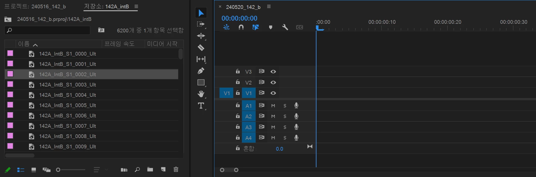 이를 우측 시퀀스에 옮기고 영상을 만들어야하는데 왼쪽 이미지들이 한번에 이동하지 않습니다.