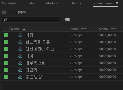각 시퀀스의 네임이 한글일때 정렬을 누르면 가나다순으로 정렬이 안됩니다.