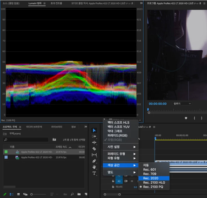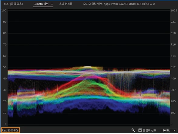 [루메트리 범위]도 선택한 시퀀스 또는 미디어를 기반으로 올바른 색상 공간으로 자동 전환됩니다.