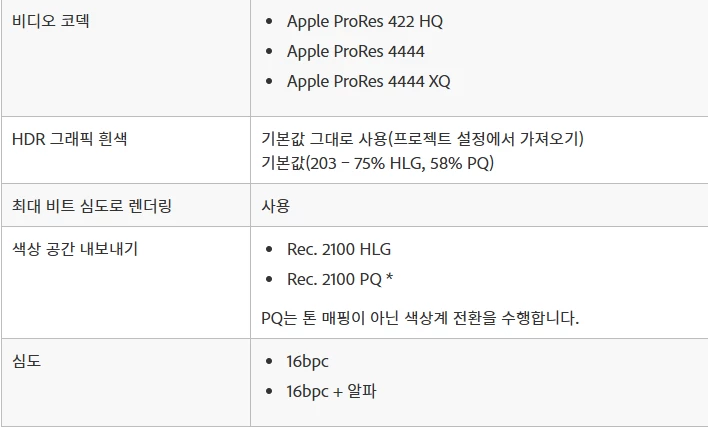 우선 해당 링크를 타고 들어가시면 HDR영상을 내보내는 방법에 대해서 공식 어도비 문서가 있습니다.