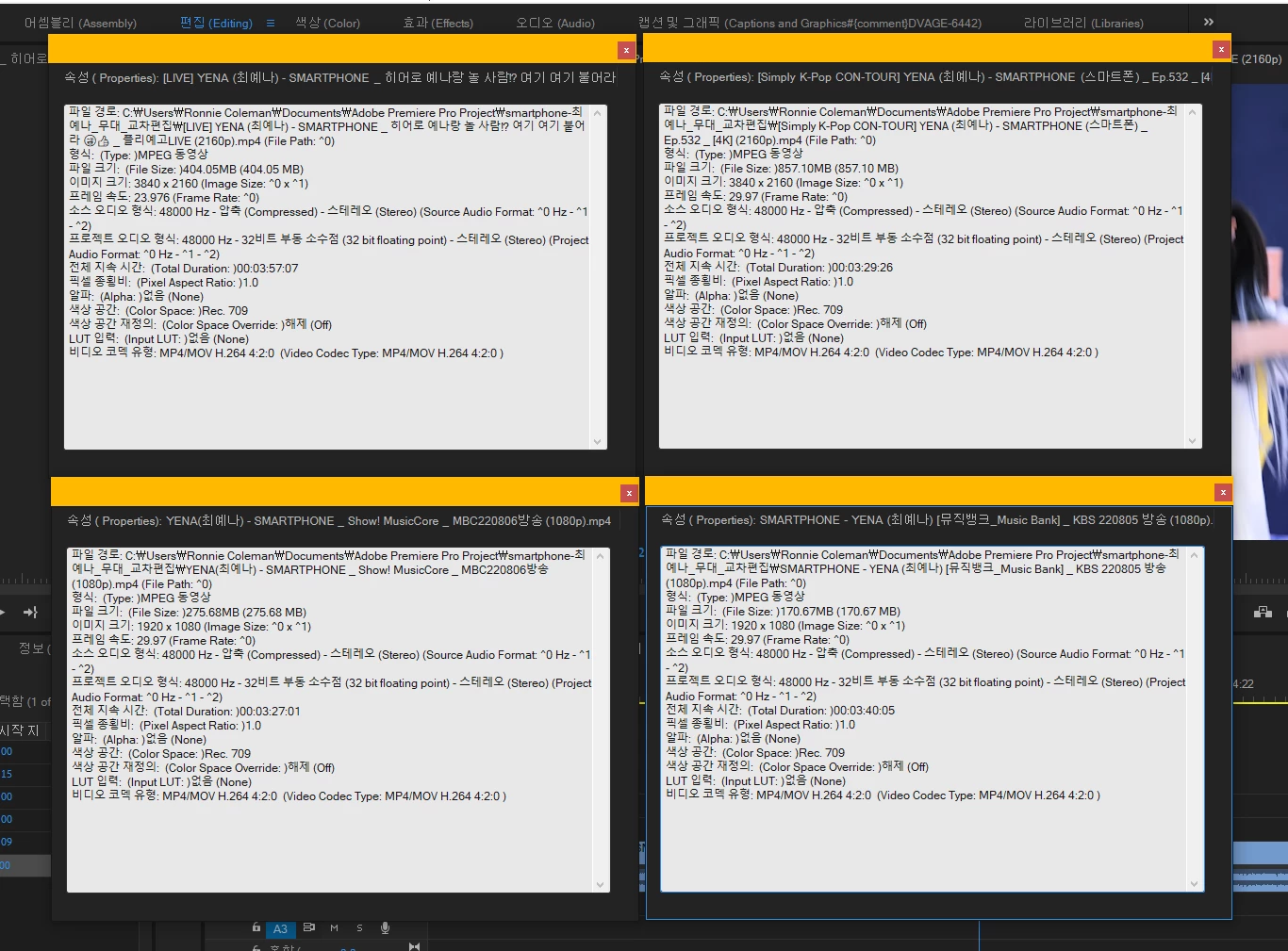 교차편집 연습해 보려고 mp4 파일을 4개 구했습니다.