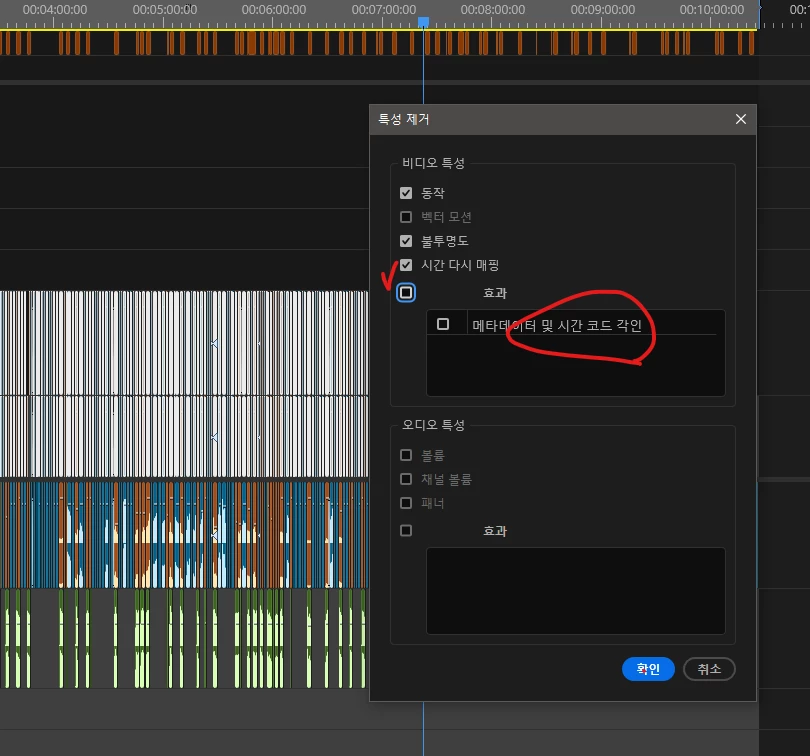 우선 특성 제거를 진행하고 시퀀스 렌더링을 걸고나서도 동일한지 확인해 보시겠어요?