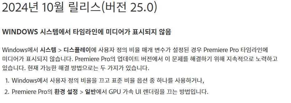간혹 사양의 문제로 타임라인의 클립의 미리보기를 불러오지 못하는 부분이 있었습니다.