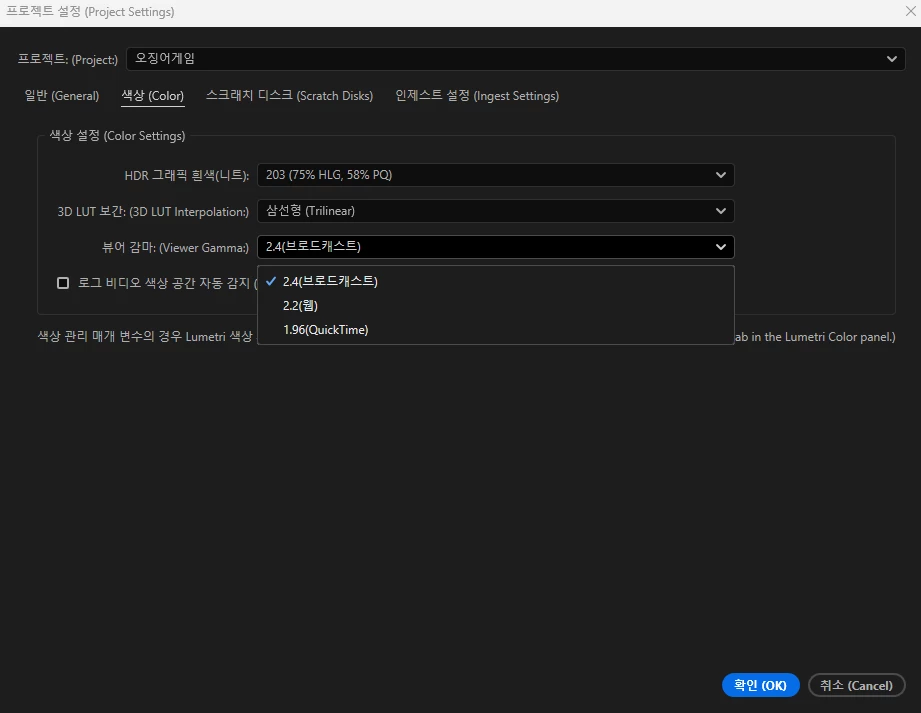 Premiere Pro에서 영상이 더 어둡게 보이는 이유 - 색상 Q&A (2024.06.24 Update)
