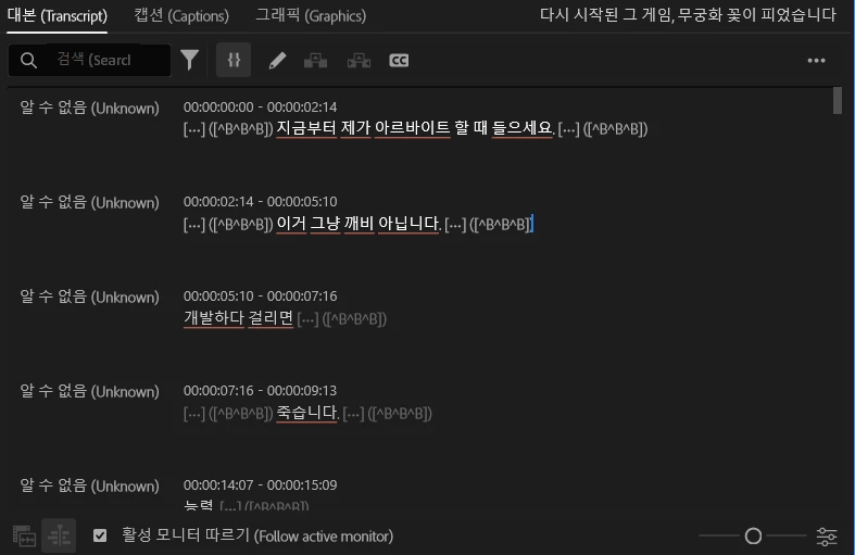 자막을 처음 생성시 영상에서 나오는 발음이나 음성 크기에 따라 정상적으로 자막이 전부다 완벽히 생성되는것은 아닙니다.