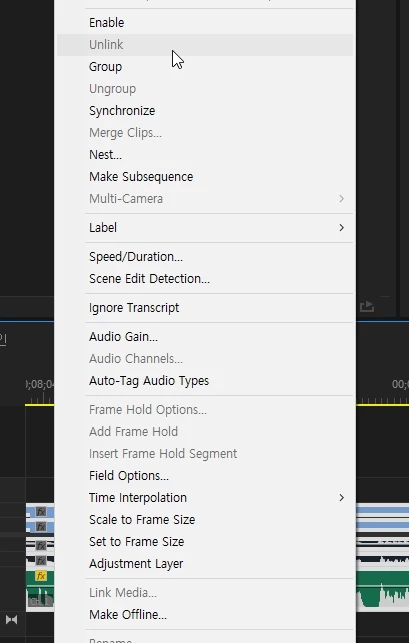 영상 및 소리 클립을 여러개 선택 후 언링크-링크를 하려고 하면 회색으로 비활성화가 되어있습니다. 어떤 건 되고 어떤 건 안되는데 혹시 아시는 분 계시면 차이가 뭔지 궁금합니다.