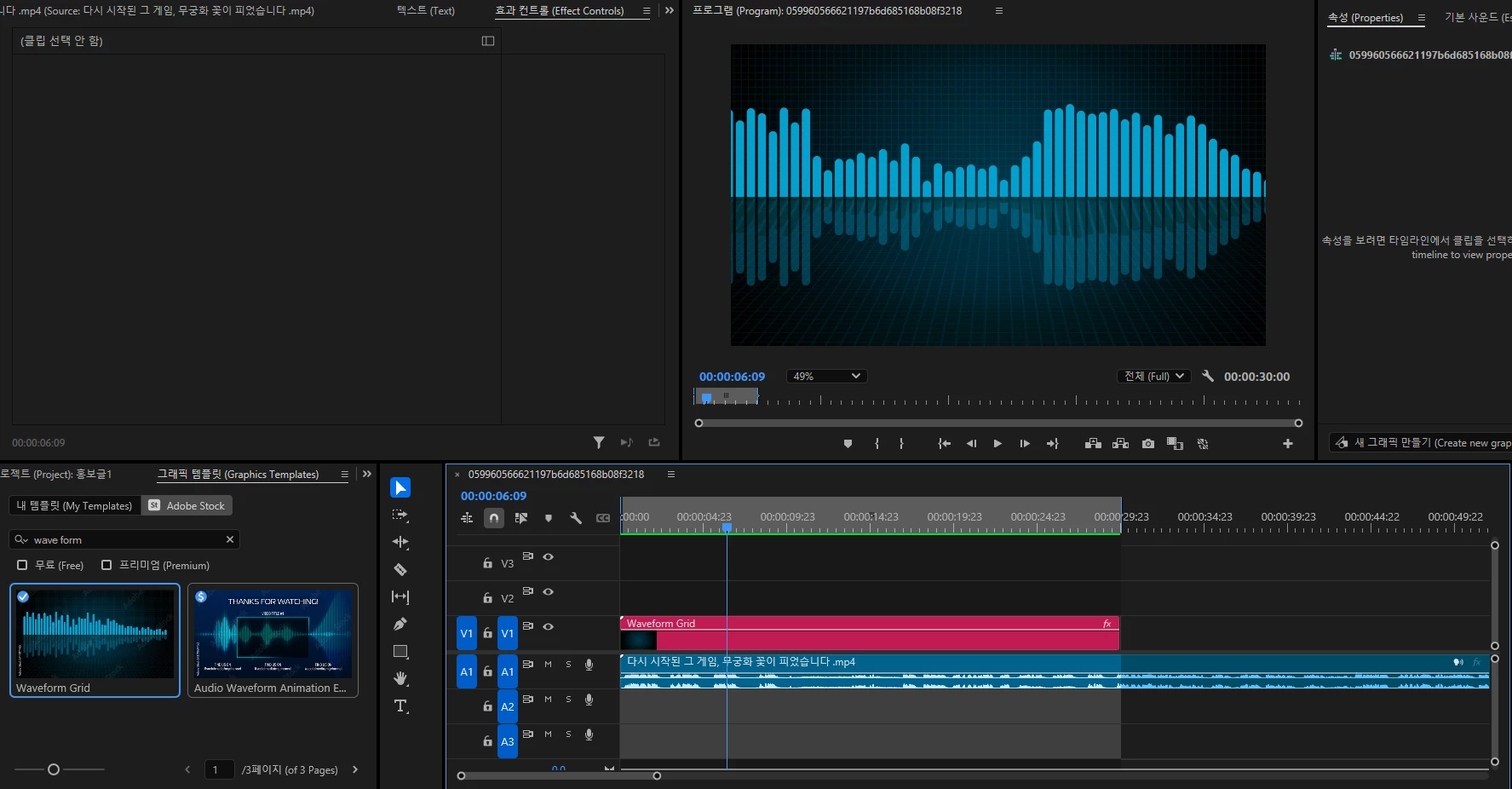 첫번째는 어도비 스톡에서 제공하는 템플릿 Audio wave form을 이용하는 방법