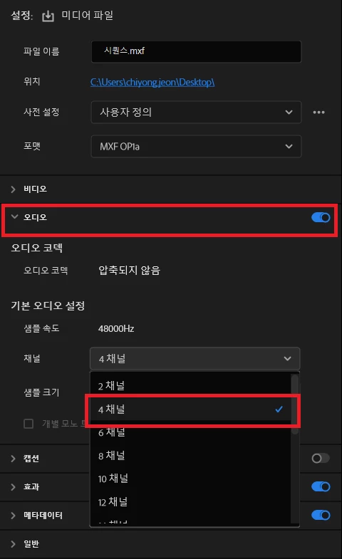 원래 영상에 오디오가 채널분리가 되어 있는데 내보내기만 하면 오디오가 하나로 합쳐집니다ㅠㅠ 어떻게 하면 원본 파일처럼 채널분리가 되어 있는 상태로 내보낼 수 있을까요?