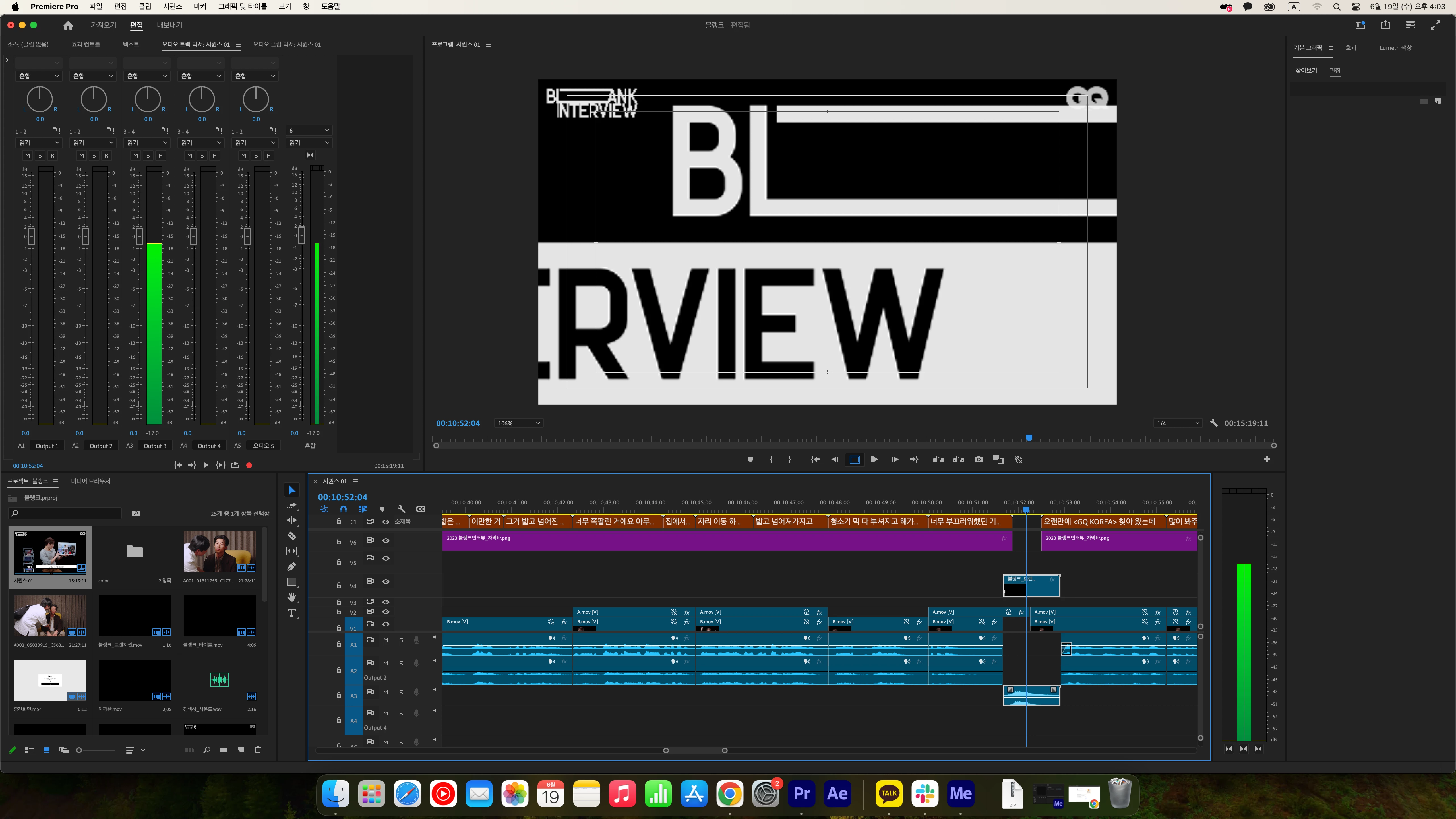 다시 깔아도 이 문제는 지속 됐는데요. 오디오 활성화를 6트랙까지 시켜 놓아도 일부 트랙은 소리가 안 들어 옵니다. 파형이 안 들어오진 않아요. 다만 렌더, 스피커로 추출되는 소리만 안들어 옵니다. 지금은 3~4트랙에 놓으면 안 들어오는 상황을 캡쳐해봤습니다