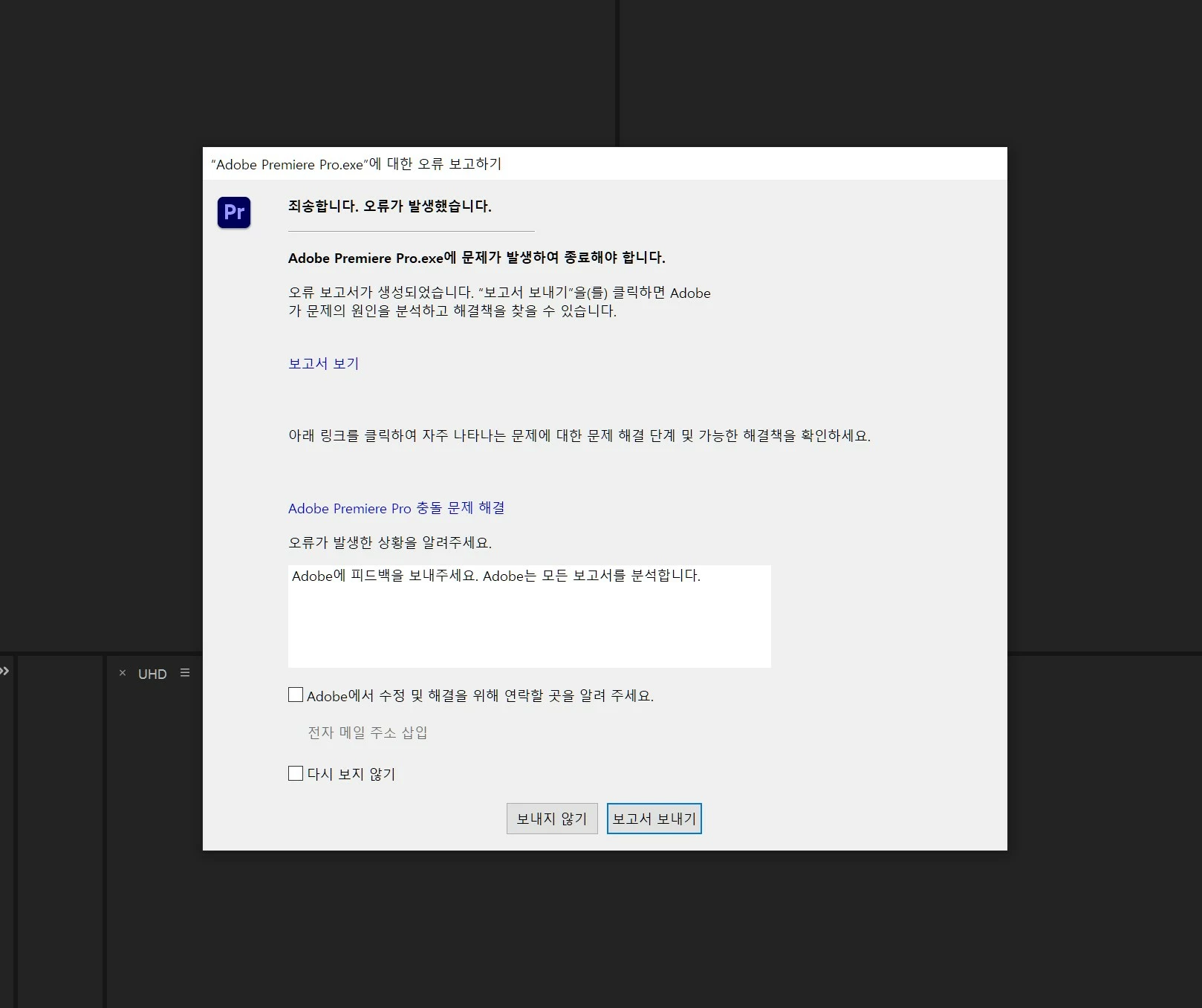 [오류] Adobe Premiere Pro.exe에 문제가 발생하여 종료해야 합니다.