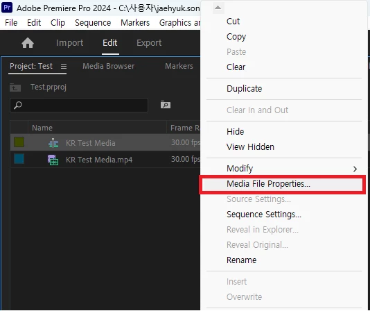 왜 24.5.0버전에서 시퀀스에서 클립 우클릭 후 속성이 사라졌죠?