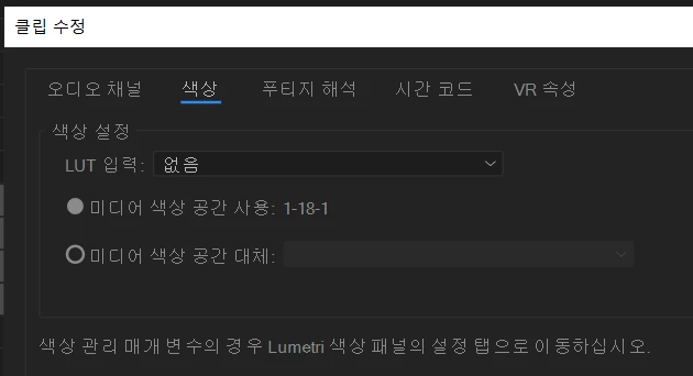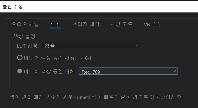 프리미어 프로에서 원본 클립의 색상 공간 변경하였는데