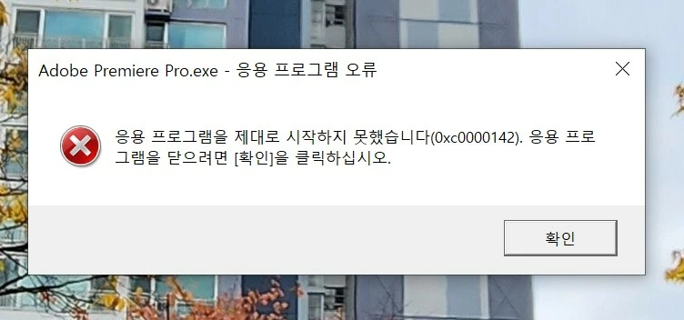 응용프로그램 오류라는 팜업 창이 뜨면서 프리미어 프로가 열리지를 않습니다.