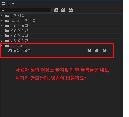 이펙트 패널 사용자 정의 즐겨찾기 백업이나 내보내기