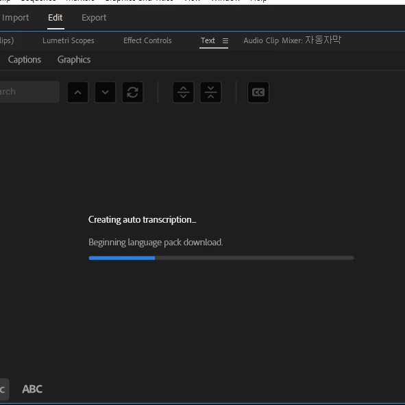 '자동자막 생성중...언어팩을 다운받기 시작합니다.' 에서 멈춰 더이상 진행이 되지않습니다.