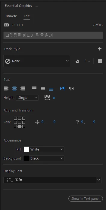자동자막 이용 후 자막그래픽 설정에서 글씨 크기나 기본적인 설정이 계속 안뜨는데 이유가 뭘까요 ㅠㅠ?