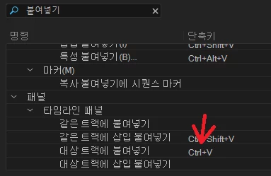 2. 클립도 1번 시퀀스 v3 트랙의 영상을 2번 시퀀스 v2에 붙여넣고 싶은데 v3에 자꾸 들어갑니다