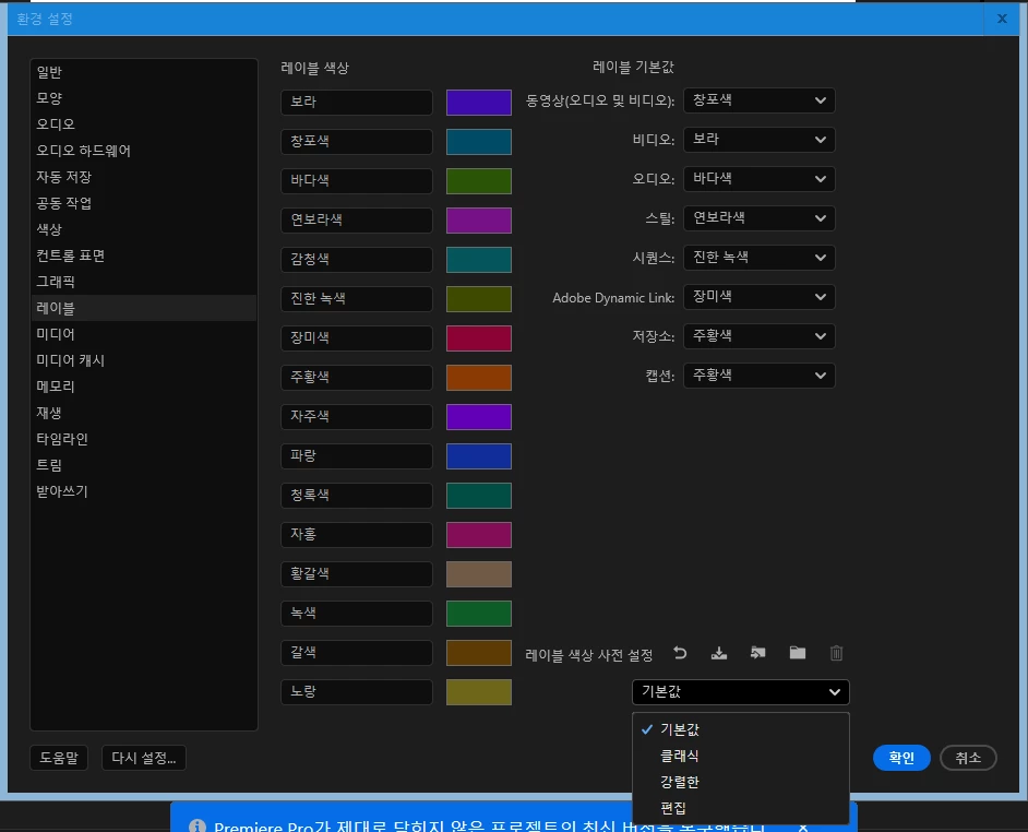 환경설정 > 레이블 > 우측하단에서 설정값들을 변경해보세요