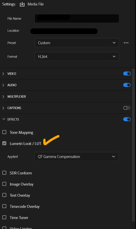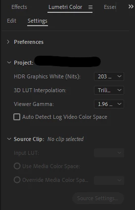 촬영 기기와 시퀀스 설정, 내보내기, 출력되는 디스플레이의 [색상 프로파일] 및 지원 [감마 값]이 동일한지 확인해보세요.