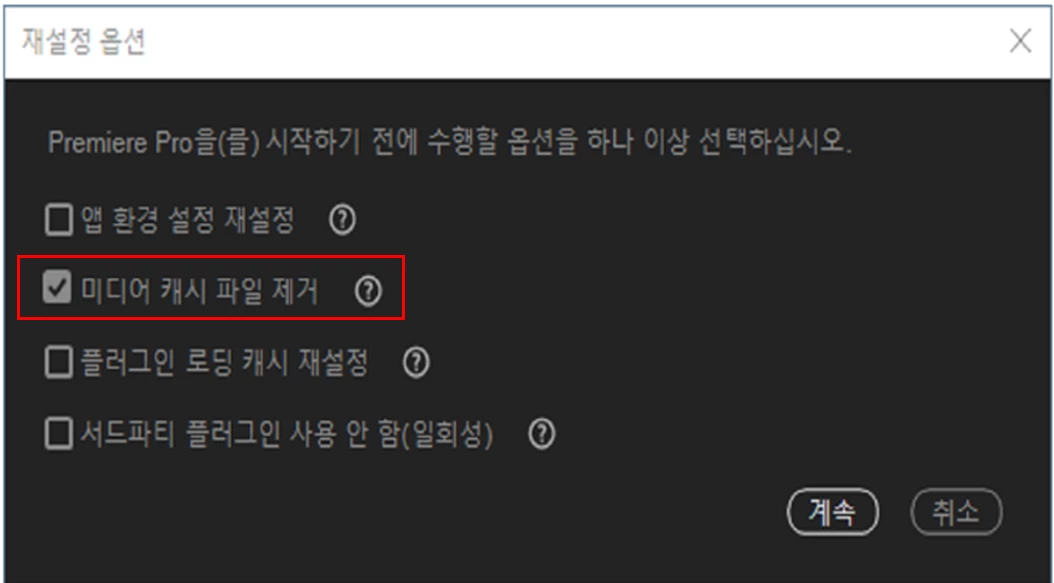 “프로젝트가 열린 상태에서 Premiere Pro가 예기치 않게 종료되었습니다.” 라는 팝업이 표시되었고