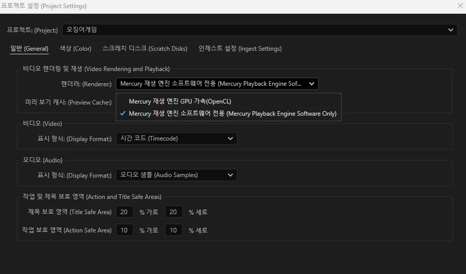그리고 프로젝트 시퀀스 세팅에 렌더러를 변경해보시어요?
