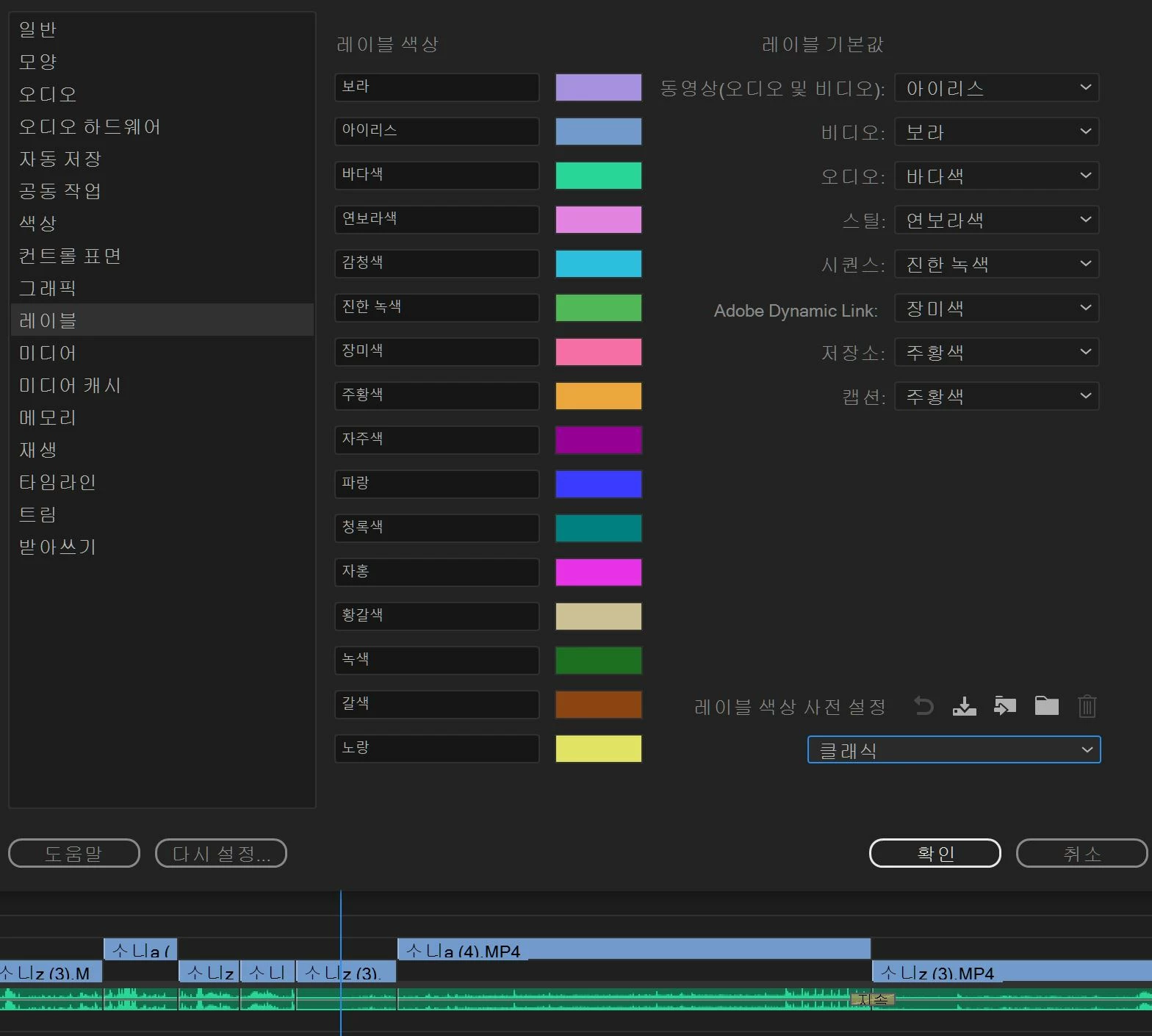 이번에 프리미어프로 24.4버전 업데이트 되면서 라벨 색상도 탁하게 변경 되었더라구요.. ㅠ