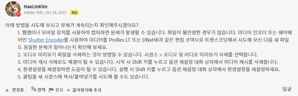 모든 클립에서 발생하는 문제라면, 앱의 환경 값을 전체적으로 초기화해서 테스트 해보셔야 할 것 같습니다.