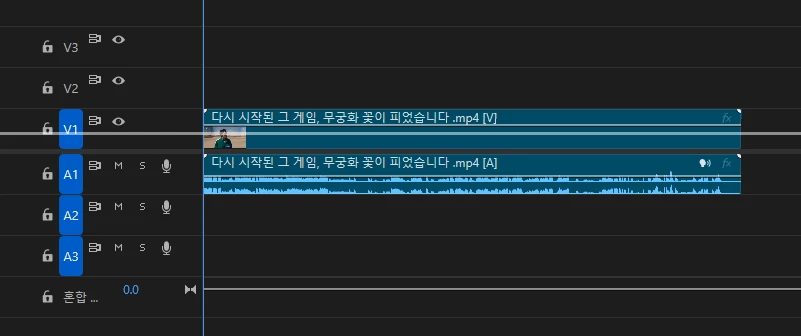 다시 각각 비디오와 오디오의 빈공간을 더블클릭 하시면 줄어들게 됩니다.