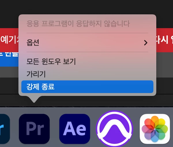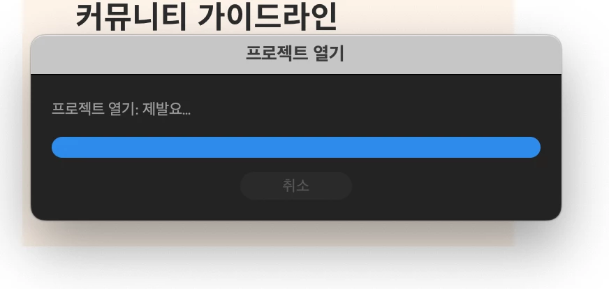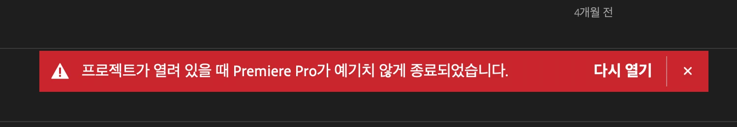 프리미어를 시작하면 프로젝트가 열려 있을 때 예기치 않게 종료되었다고 떠요......
