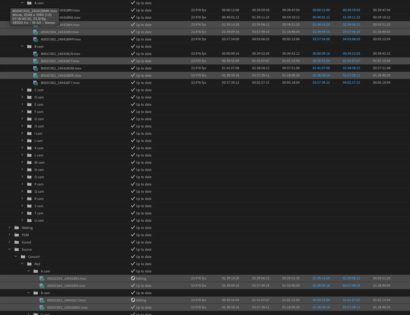 프로젝트 패널에 중복된 클립을 취합할수는 없을까요?