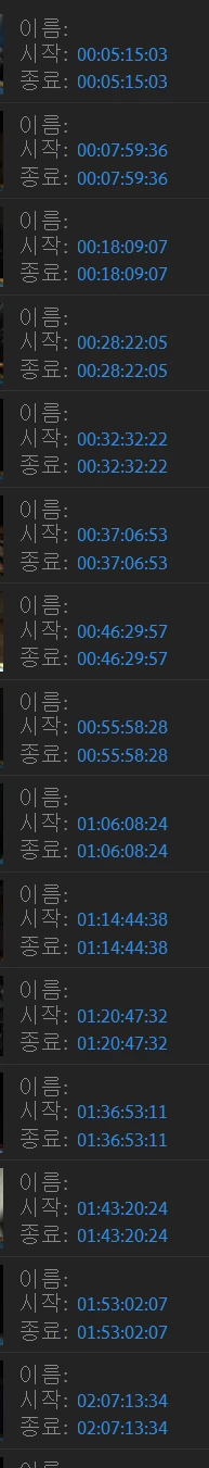 문제는 그렇게 마커로 표시한 약 200여개의 시간대를 일일이 복붙해서 옮기기 너무 힘듭니다. 타임스탬프 만드는 건 문제가 안되는데 각 영상에 특정 하나의 시간대를 설명하기 위한 마커들을 일괄적으로 추출하고 싶습니다.