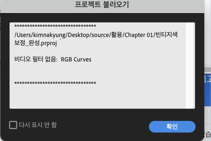 프리미어프로 비디오 효과항목 중 RGB 곡선효과 에러