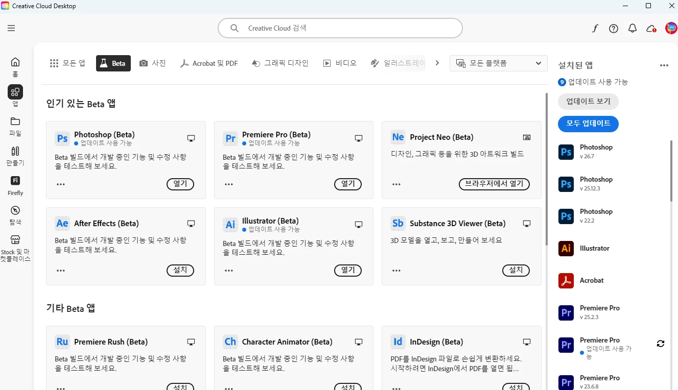 크리에이티브 클라우드 데스크톱에서 프리미어 프로 베타버전을 다운받아서 동일한 현상이 있는지 테스트 해보시겠어요?