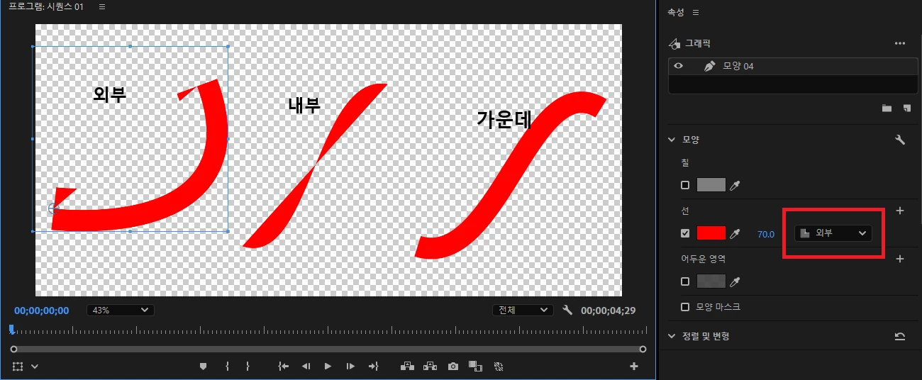 보내주신 사진을 확인을 해봤을때 선 선택을 외부로 선택 해주신게 아닌가 싶네요.