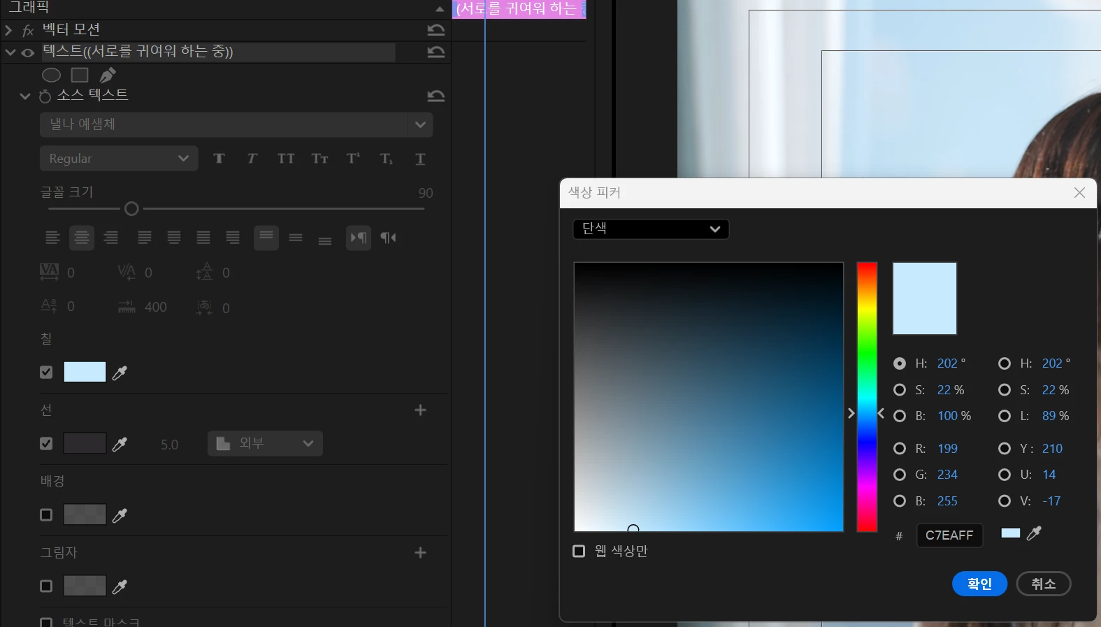 아쉽게도 프리미어에서는 색상 팔레트 기능은 확인이 되고 있지 않네요.