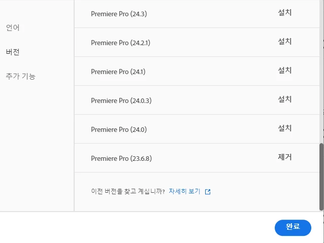 프리미어프로 23버전 다운그레이드를 하고 싶습니다.