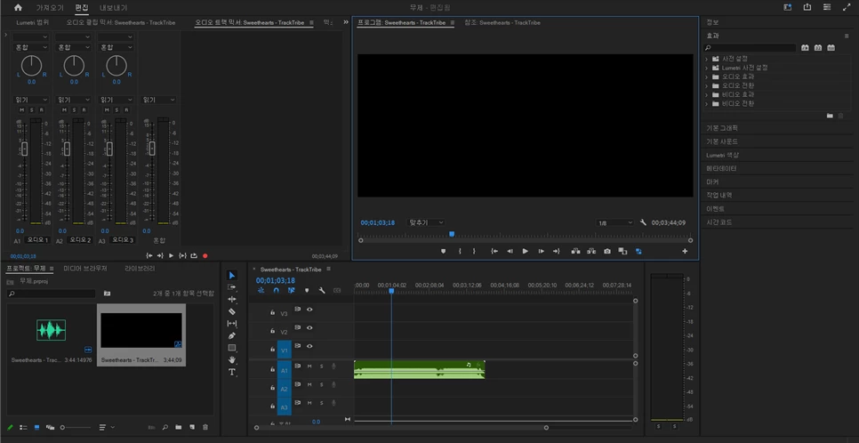프리미어프로 24버전에서는 오디오가 작동하지 않습니다.